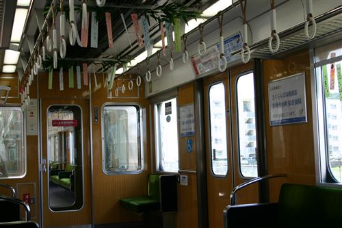 | 七夕直後ということで短冊だらけの七夕電車 |