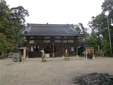 | 志氐神社古墳、社殿のあたりが消失した前方部 |