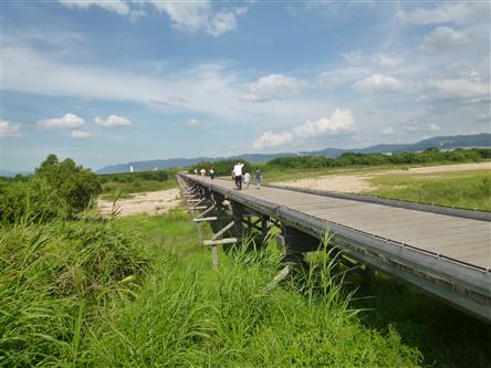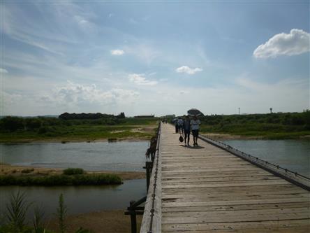 付近古墳を探査後、木津の流れ橋(上津屋橋)を渡って八幡市へ。